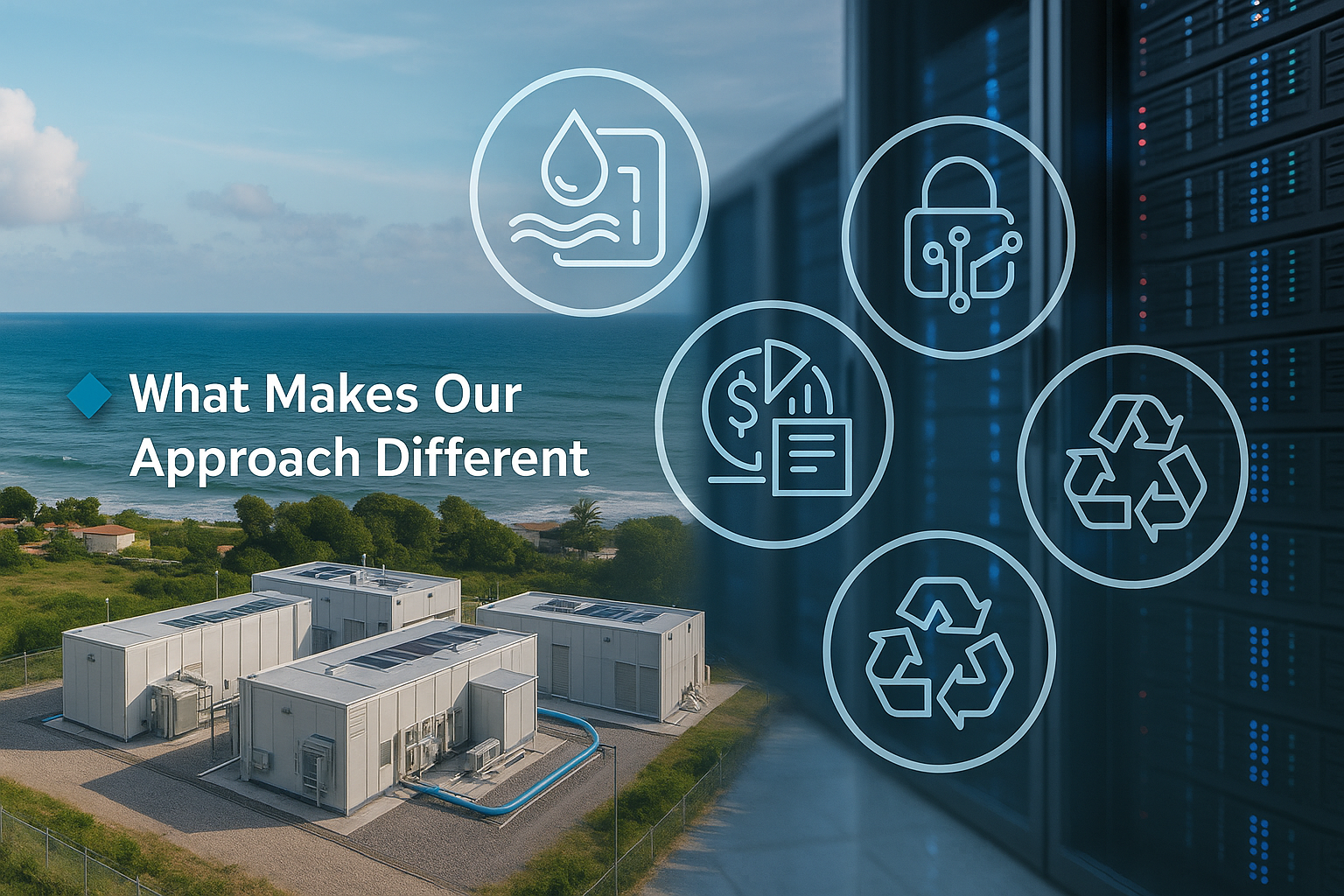 We turn ocean water into cooling and waste heat into fresh water — replacing energy-intensive chillers with a circular, AI-grade seawater cooling and desalination system. Ideal for coastal and shipboard deployments, AquaCyclix™ slashes energy consumption and creates zero-fresh-water infrastructure.
